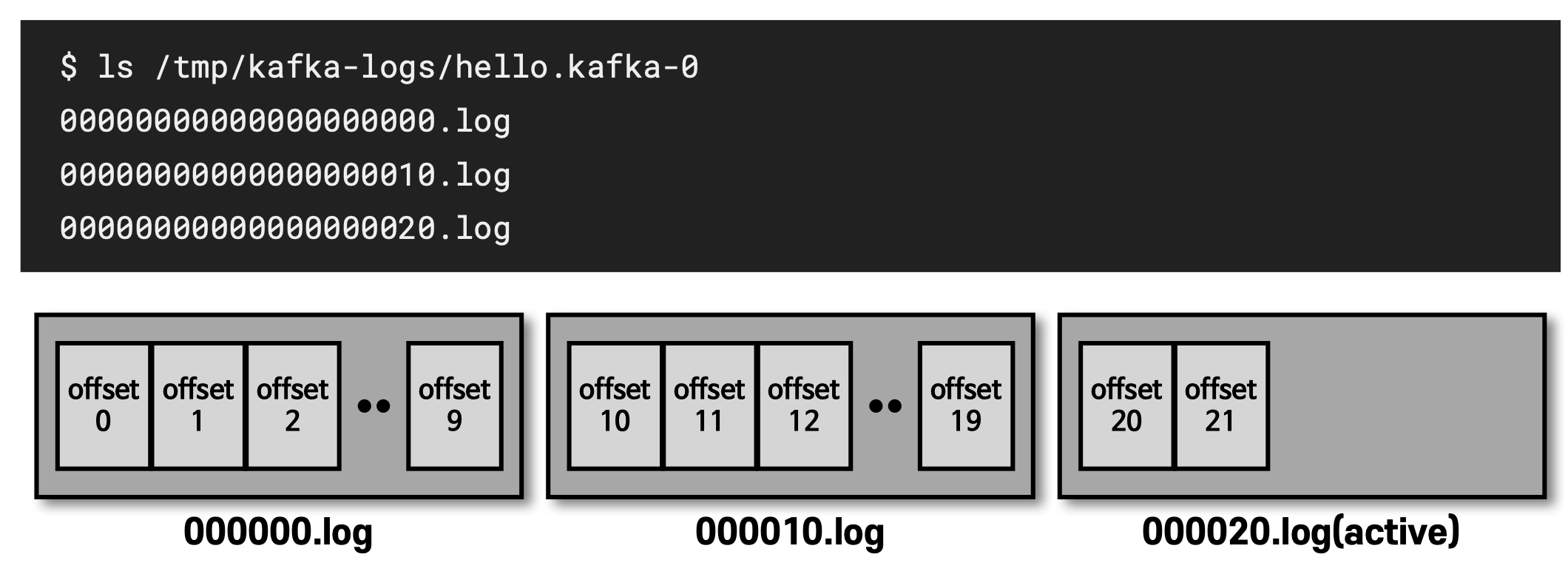 - 가장 처음 만들어지는 offset 번호가 로그 파일 이름이됨